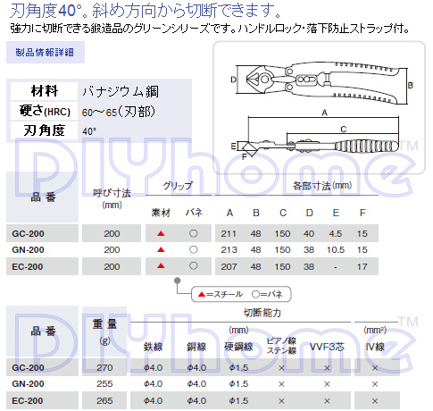 ■切斷能力:鐵線4.0mm、銅線4.0mm、硬鋼線1.5mm